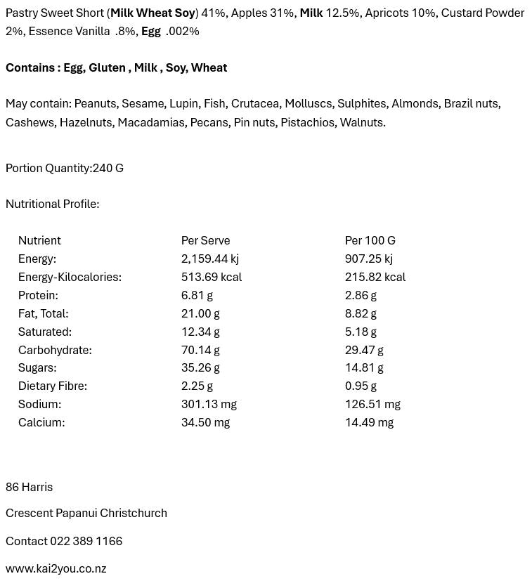 Apple and apricots wrapped inside sweet pastry with creamy custard!