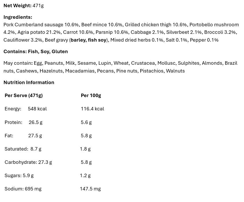 Kai 2 You grill Pork sausage, chicken thigh, beef meatball with herb potatoes, carrot & parsnip mash and greens