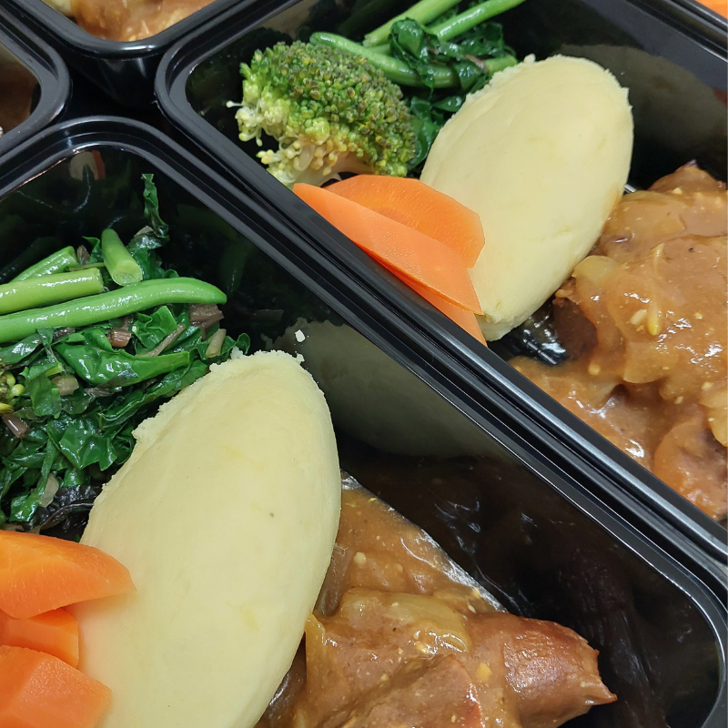 Sausages with fried peppers and onions, heavenly gravy, mashed potato, carrots and delectable greens!